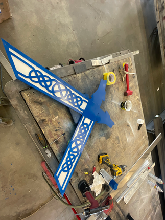 Lots of warm weather projects in honor of Baldr. Two larger ones have come to completion thanks to a few of our folk. Stian Penner and his amazing creative abilities was asked to produce an outdoor sign for the front of the Hof and without question, he produced. Something was missing from of Baldrshof wolves into an outdoor sign that turned out amazing!